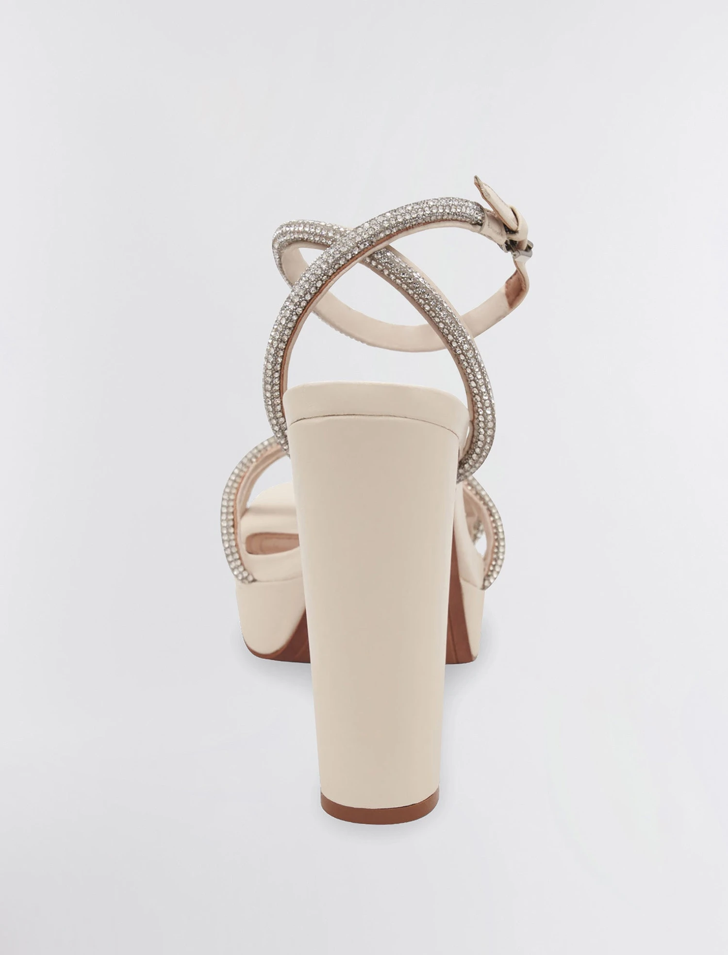 Bold sandal heel with sparkling straps for a showstopping entrance. Crafted from leather with a chunky block heel and a platform for added height. Finished with an adjustable ankle strap.