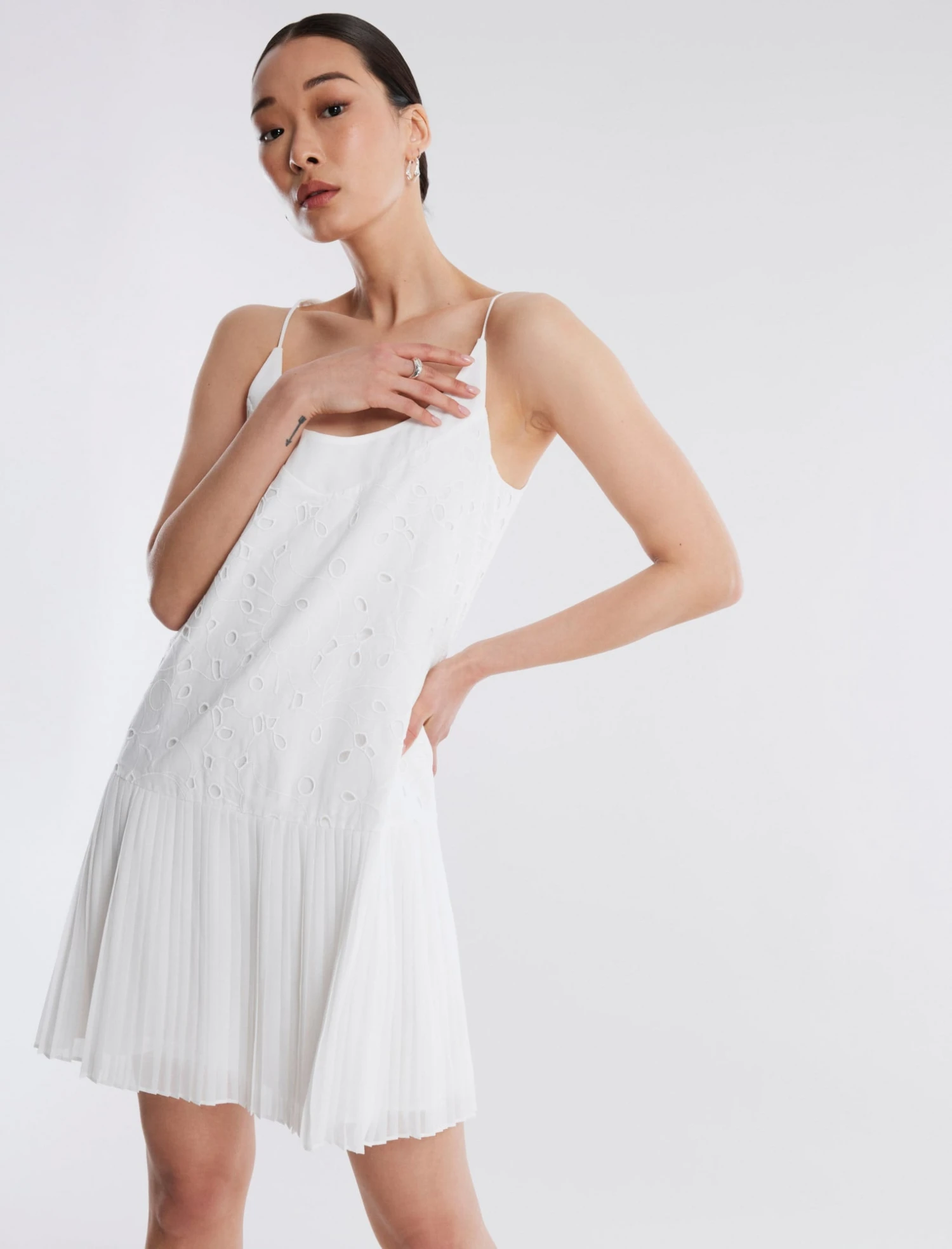 SKU: YMNIZ 7647854493856 Category: Dresses Tags: 7.7md, Classification-Casual Dresses, Color:WHITE, Colorgroup-White, Delivery:2.28.23, Detail-Pleated, EndofSeasonSale, Feminine Details, Launch Date: [], Length-Mini, Material-Cotton, Material-Eyelet, Neckline-Scoop, Neutral Hues, New to sale, Occasion-Bridal, Occasion-Daytime, Occasion-Vacation, Percent_upto50, Pricetype-Markdown, RakutenRewards, Season:spring, Season:spring23, Sleeve-Sleeveless, Smart_tag-Clothing, Smart_tag-Clothing Less Swim and Intimates, Smart_tag-Clothing Less Swim Intimates and Denim, Smart_tag-Dresses & Jumpsuits, Smart_tag-dressesandaccess, Smart_tag-MDandOutlet, Smart_tag-Not Birthday Shop, Smart_tag-Not Gift Card, Smart_tag-Not Last Look, Smart_tag-Not New Arrival, Smart_tag-Not Outlet, Smart_tag-Not tips-donation, Smart_tag-Sale Excluding Last Look, Smart_tag-ShopAllLessExclusions, Smart_tag-WeddingEdit, Spring23, US Sizing, WKND15, YBlocklist