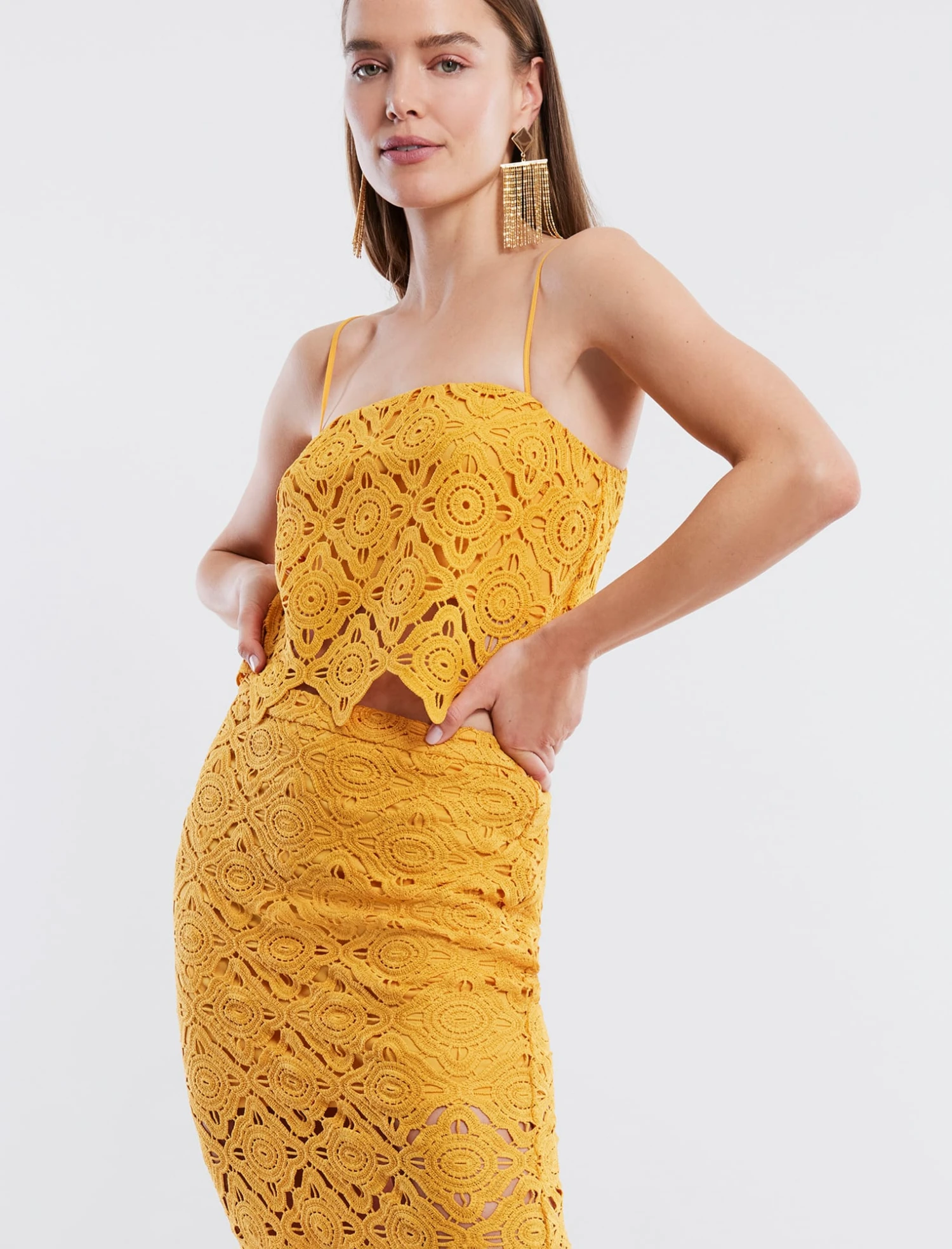 SKU: YMNIZ 7631081963680 Category: Tops Tags: 4.11.23MD, Classification-Tanks + Camis, Color story, Color:GOLD, Colorgroup-Yellow, Delivery:1.30.23, EndofSeasonSale, Launch Date: [], Matching Sets, Material-Eyelet, Material-Lace, Neckline-Square, New to sale, Occasion-Date, Occasion-Daytime, Occasion-Vacation, Percent_upto50, Pricetype-Markdown, Promo, RakutenRewards, Season:spring, Season:spring23, Sleeve-Sleeveless, Smart_tag-Clothing, Smart_tag-Clothing Less Swim and Intimates, Smart_tag-Clothing Less Swim Intimates and Denim, Smart_tag-leatherandlace, Smart_tag-MDandOutlet, Smart_tag-Not Birthday Shop, Smart_tag-Not Gift Card, Smart_tag-Not Last Look, Smart_tag-Not New Arrival, Smart_tag-Not Outlet, Smart_tag-Not tips-donation, Smart_tag-Sale Excluding Last Look, Smart_tag-ShopAllLessExclusions, Smart_tag-suitandtops, Smart_tag-WeddingEdit, Spring23, Style:Maelle Crop Top, US Sizing, WKND15, YBlocklist